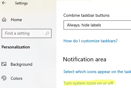 向下滾動並檢查“操作中心”選項是否已啟用Turn system icons on or off部分。