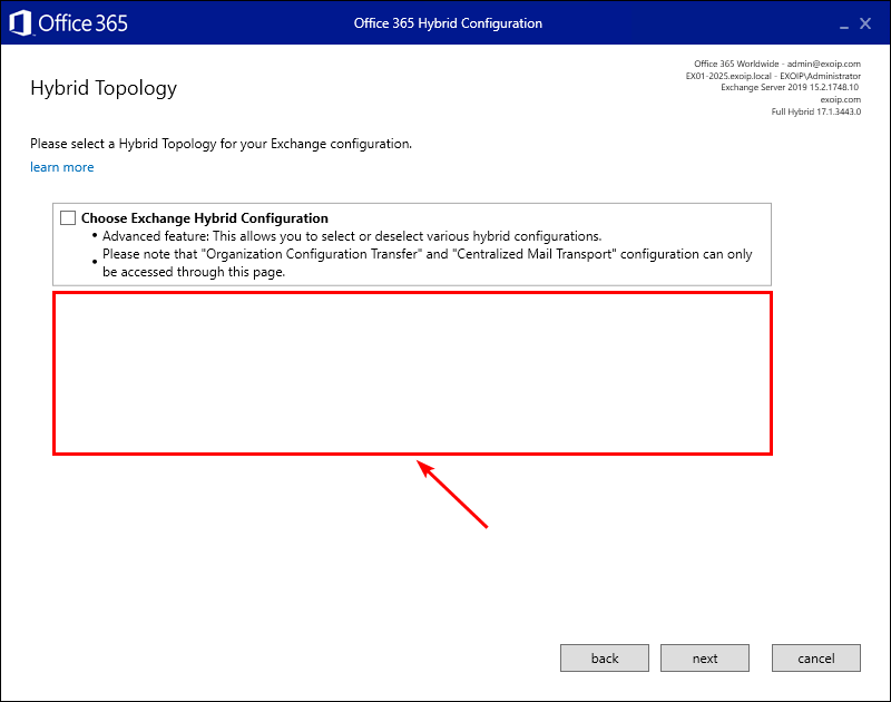 這就是混合配置嚮導中的混合拓撲選項的樣子。沒有可供選擇的選項。