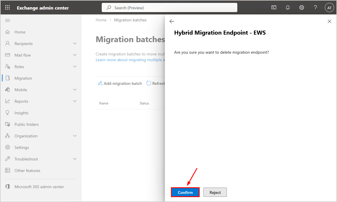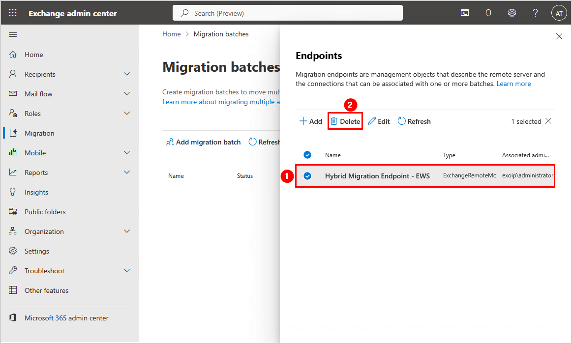筆記:您可以在 Microsoft 365 中創建遷移終結點。這也是您無法從混合配置嚮導中選擇混合拓撲的原因。