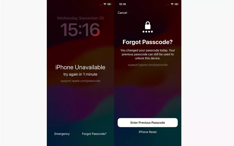 您之前用於進入鎖定的 iPhone 的密碼,在此期間您將看到該選項進入