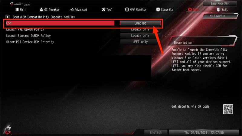 CSM是一個兼容支持模塊,允許新的 UEFI BIOS 與舊的傳統 + MBR 啟動模式兼容。如果您想從 M.2 SSD 啟動,您應該啟用 CSM,因為大多數計算機品牌都將 CSM 選項設置為禁用。