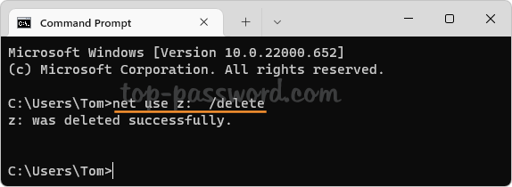 - 每當您想要斷開網絡驅動器的連接時,請運行以下命令: