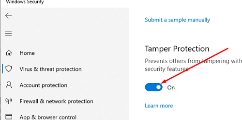 如果您收到0x80070005(訪問被拒絕)重置數據庫時出錯,必須暫時禁用防篡改保護Windows 安全 GUI 中的選項。