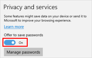 如果“提供保存密碼”選項處於關閉狀態,則每當您登錄任何站點時,Windows 都不會彈出建議您保存密碼的通知。要使 Edge 提供密碼保存提示,請執行以下操作:
