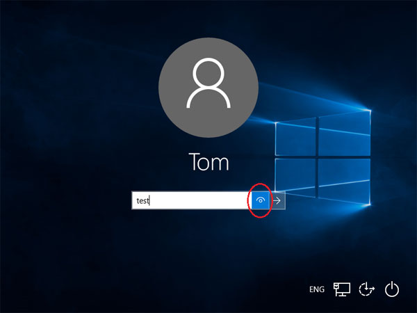 在 Windows 10 登錄屏幕中輸入密碼後,您將在密碼框的右側看到一個小眼睛圖標。按住眼睛圖標,您可以顯示剛剛輸入的文本。如果密碼按預期顯示,但係統仍然提示密碼不正確,則您可能忘記了密碼。