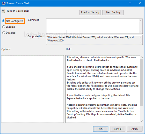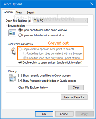 如何禁用在 Windows 資源管理器中單擊打開文件夾/文件?無法將單擊更改為雙擊嗎?為了更改通過單擊或雙擊打開文件的行為,您必須打開文件夾選項。但是,如果您找到“選項”該怎麼辦單擊打開一個項目(指向選擇)”顯示為灰色?要解決此問題,您必須關閉 Windows 資源管理器的 Classic Shell 組策略。