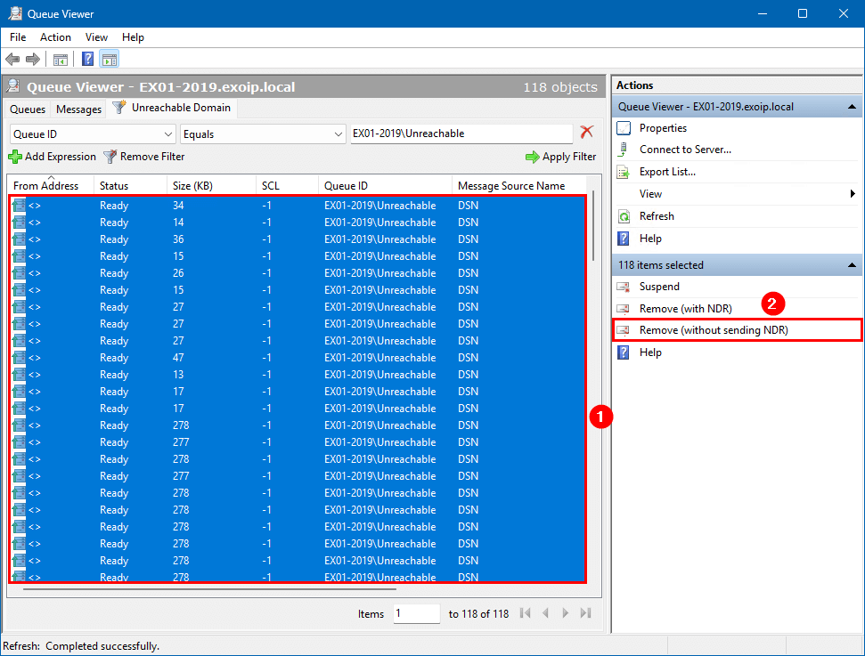 設置垃圾郵件過濾器後,請刪除 Exchange Server 隊列查看器中的垃圾郵件: