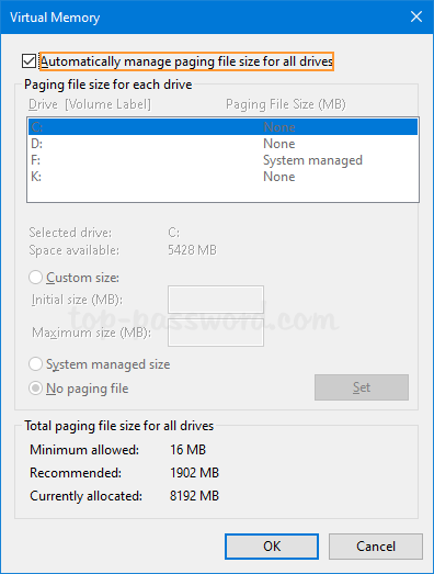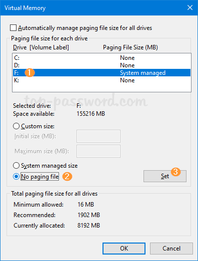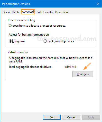 事實證明,只有保存頁面文件的驅動器才會出現此問題。要解決Windows 10中的“參數不正確”問題,您需要暫時禁用要更改驅動器號的驅動器上的分頁文件。