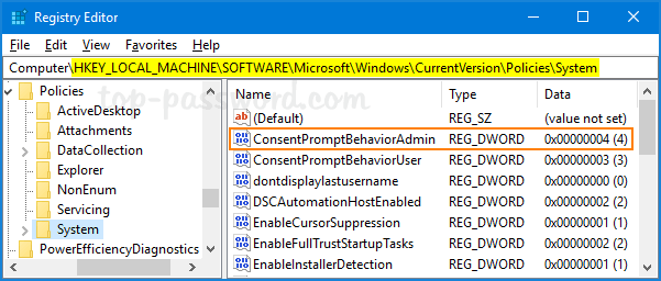 方法 2:使用註冊表編輯器使 UAC 不要求管理員密碼