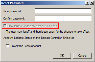 現在您應該能夠重置密碼並強制域用戶在下次登錄時更改密碼。