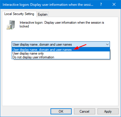 - 單擊下拉框選擇“用戶顯示名稱、域名和用戶名”。