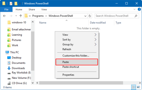 第二步:然後粘貼Windows PowerShell.Ink到Windows PowerShell當前用戶目錄下的文件夾。