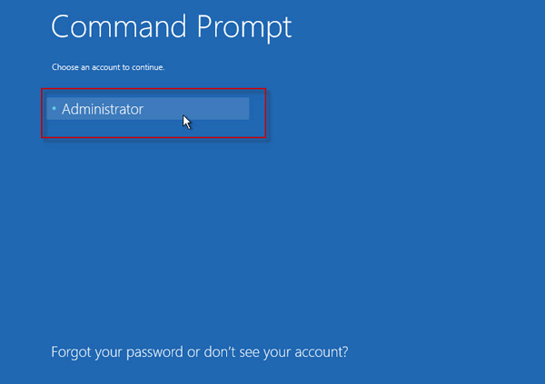 步驟 3:之後命令提示符屏幕出現時,行政人員即使處於禁用狀態,屏幕上也會顯示內置的 Windows 10。單擊它繼續。