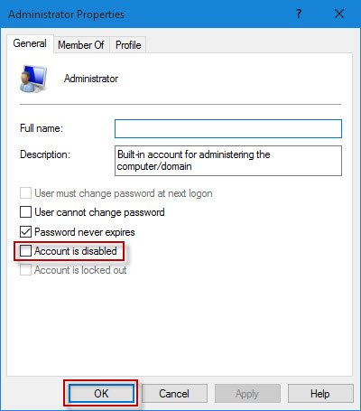 步驟12:訪問內置管理員帳戶後,您可以啟用任何已禁用的其他帳戶。