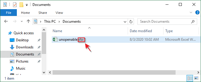 步驟 2:找到出現錯誤的工作簿。然後將其文件擴展名重命名為已安裝的 Excel 支持的擴展名,通常是 .xlsx 擴展名。