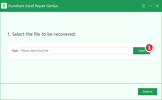 第 2 步:運行該工具並單擊打開按鈕輸入損壞的 XLSX 文件進行修復。