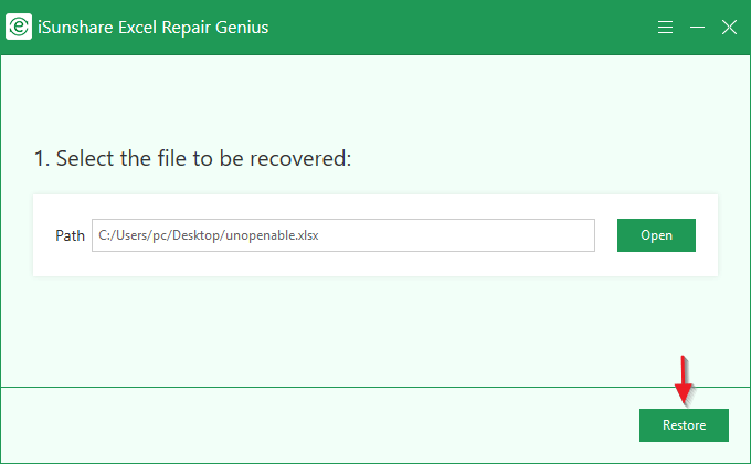 如果上述方法無法消除工作簿的錯誤消息“Excel無法打開文件,因為文件格式或文件擴展名無效”,那麼您可以考慮使用專業的文件修復工具iSunshare Excel Repair Genius來修復損壞的Excel文件。此 Excel 文件修復工具可以快速有效地解決 Excel .xlsx 文件的各種損壞,同時保持文件內容不變。您可以通過執行以下幾個步驟來測試該工具。
