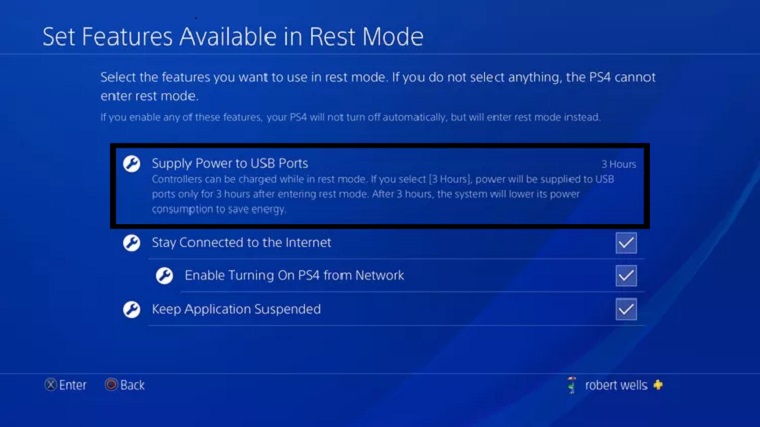 - 設置在REST模式下可用的功能>向USB端口供電並選擇其中一個選項。