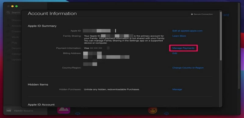 第4步:滾動到“Apple ID 摘要”以查看您的付款信息,然後選擇“管理付款”>“繼續”。