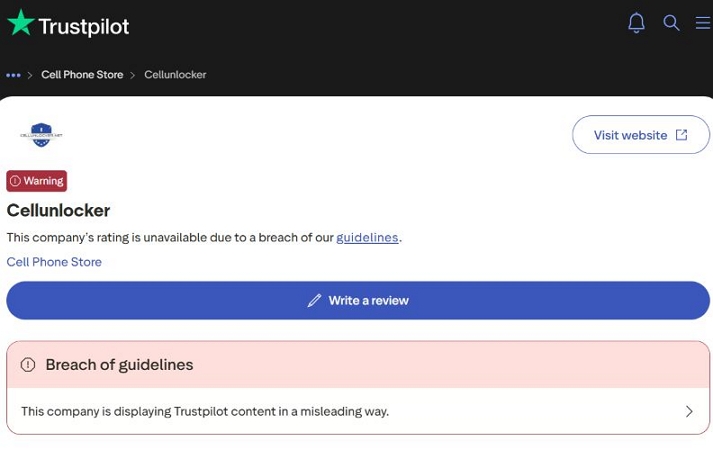 近兩年來,CellUnlocker.net 一直在進行Trustpilot 警告因為“Trustpilot 內容的誤導性使用”。僅此一點就讓人對其 2025 年的可信度產生懷疑。