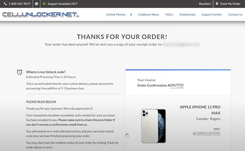步驟 6。如果成功,您將收到一封包含解鎖詳細信息的電子郵件。對於許多用戶來說,最終屏幕只是顯示“已解鎖”,並確認載體鎖已被移除。