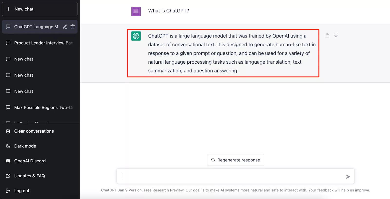 以下是 ChatGPT 的示例問題和機器人的響應。您可以通過單擊“喜歡”或“不喜歡”圖標留下有關此答案的相關性和有用性的反饋。