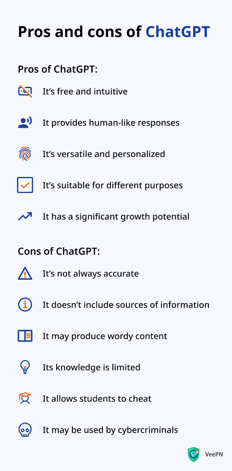 以下是使用 ChatGPT 的最顯著的優點和缺點。