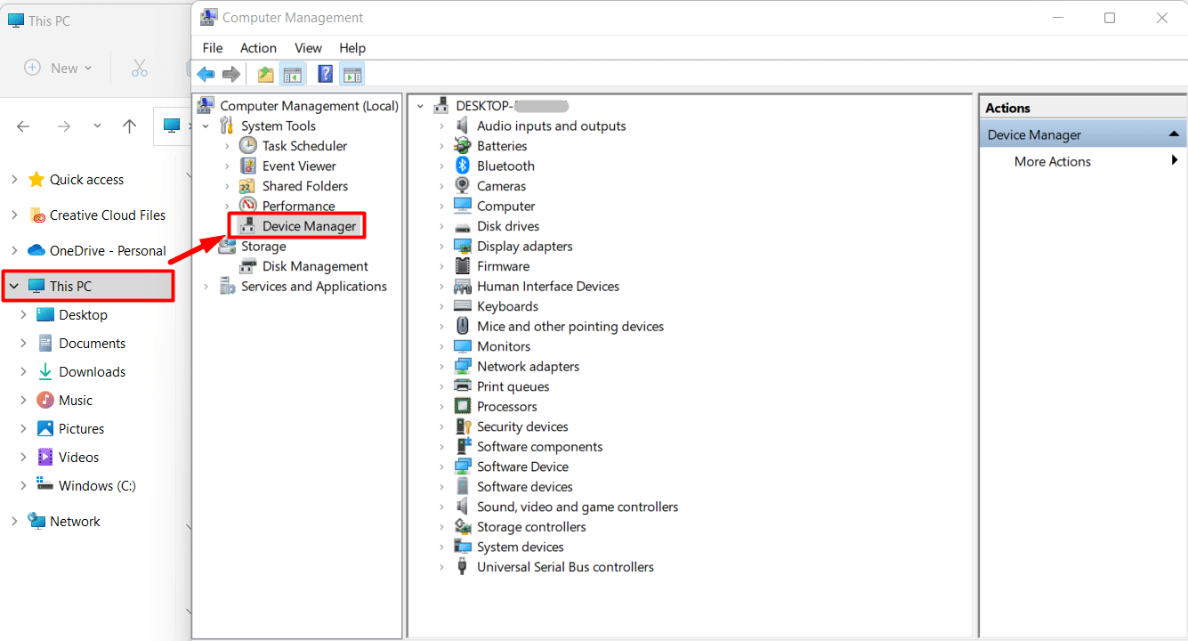 - 在“瀏覽”窗口中,右鍵單擊“此電腦”,然後單擊“管理”。
