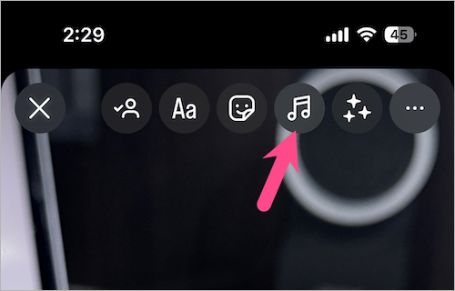 在一個故事裡– 打開使用外部音頻的 Instagram 故事。點擊左上角的音樂鏈接,底部會彈出一個框。然後點擊“書籤”圖標進行保存。