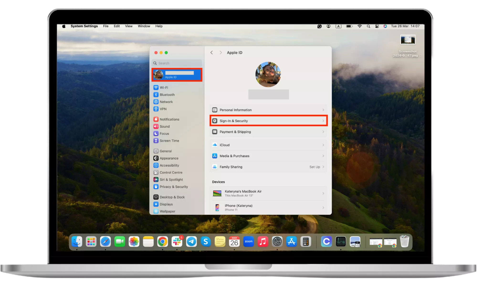 - 選擇蘋果ID,然後單擊登錄和安全。