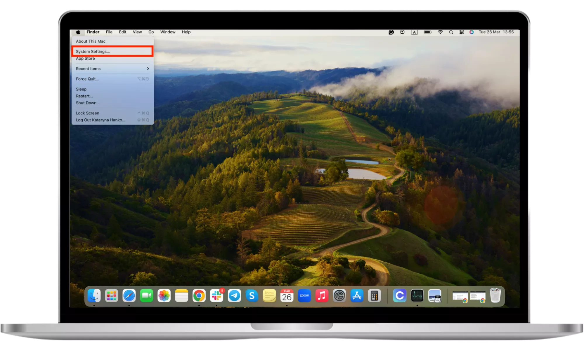 - 打開蘋果圖標並選擇系統設置。