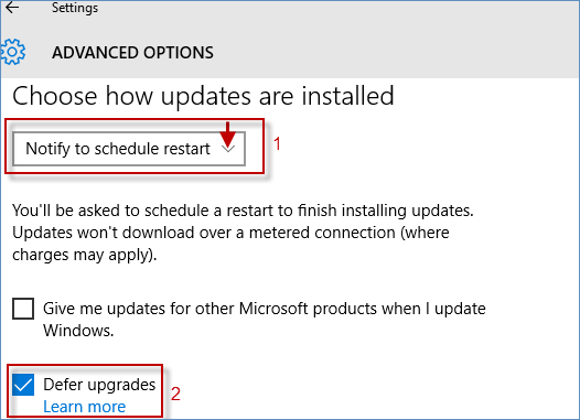 第 4 步:單擊向下箭頭圖標選擇通知安排重新啟動在列表中,並檢查推遲升級。