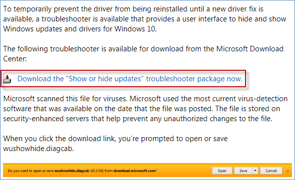 步驟一:前往微軟官方網站到下載顯示或隱藏更新疑難解答。雙擊該工具打開下一個對話框。