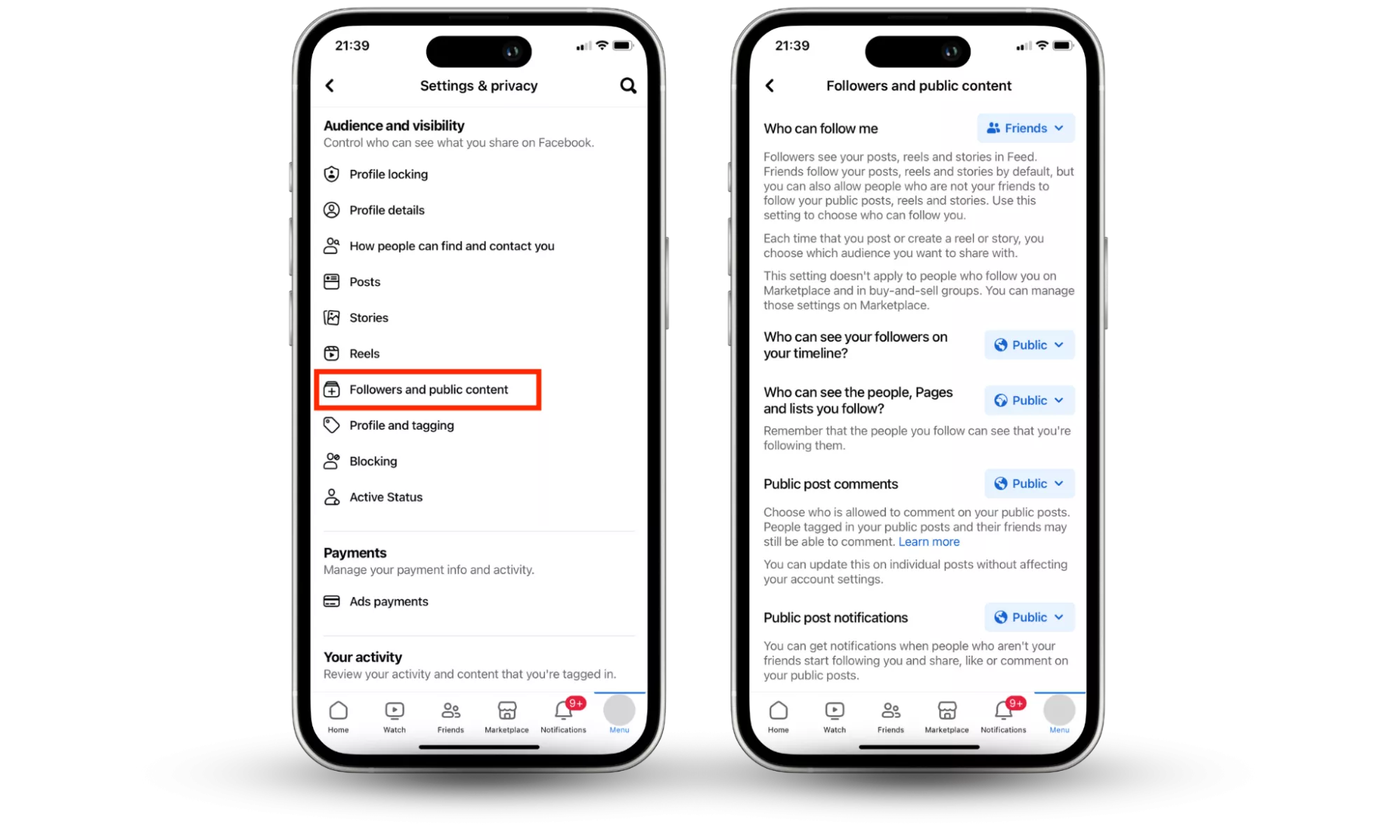- 在左側邊欄上,向下滾動到觀眾和知名度然後單擊關注者和公共內容。