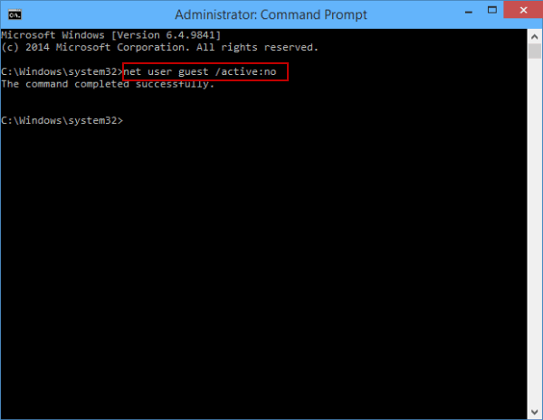 方式 3:通過命令提示符啟用內置來賓帳戶