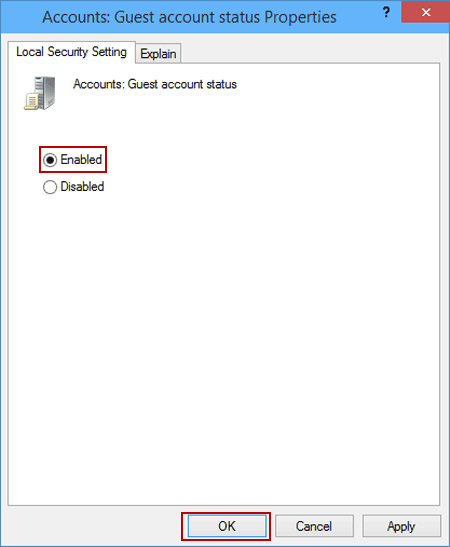 步驟3: 選擇啟用然後單擊好的啟用訪客帳戶。