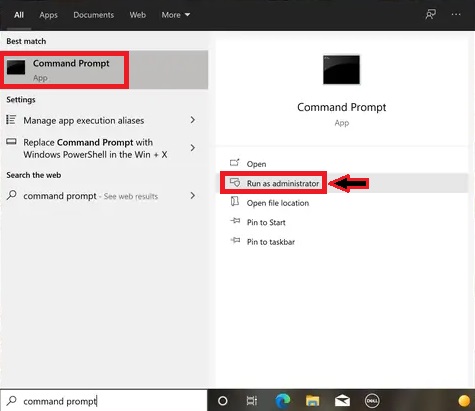 步驟一:開始命令提示符作為行政通過開始菜單。