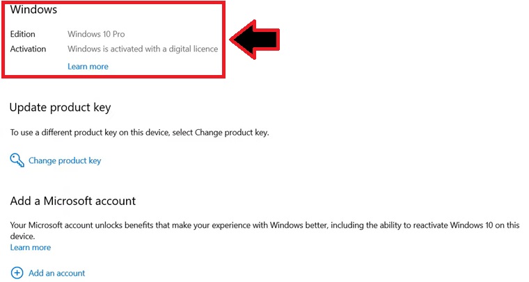 第4步:就是這樣!您的 Windows 10 副本現已激活,激活屏幕應如下所示。
