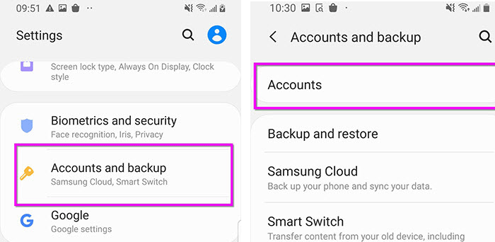 步驟 2:在“設置”菜單中,點擊賬戶和備份,然後點擊賬戶。