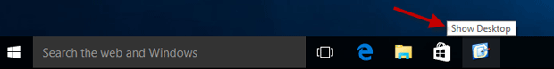 2)然後您將在任務欄上看到“顯示桌面”圖標。單擊該圖標後,Windows 10 將立即最小化所有打開的窗口並立即顯示桌面。再次單擊該圖標後,您將恢復所有打開的窗口。