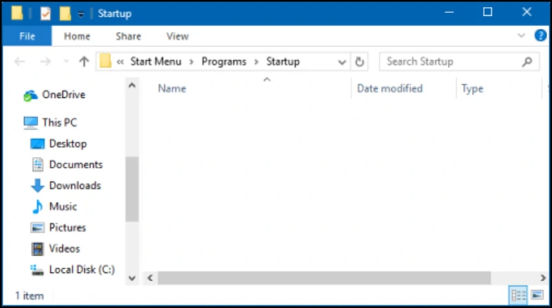 Startup 是一個隱藏的系統文件夾,位於 %APPDATA%MicrosoftWindowsStart MenuProgramsStartup 中。這是訪問它的簡單方法: