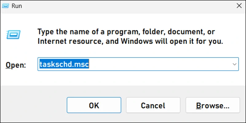 步驟1按 Win + R,輸入taskschd.msc,然後按 Enter 打開任務計劃程序。