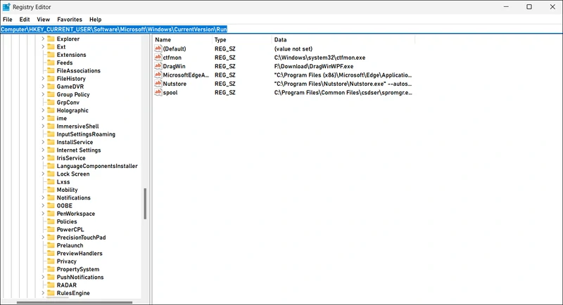 HKEY_CURRENT_USERSoftwareMicrosoftWindowsCurrentVersionRun