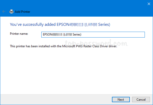 下一個窗口允許您重命名打印機。點擊下一個如果你不想改變它。