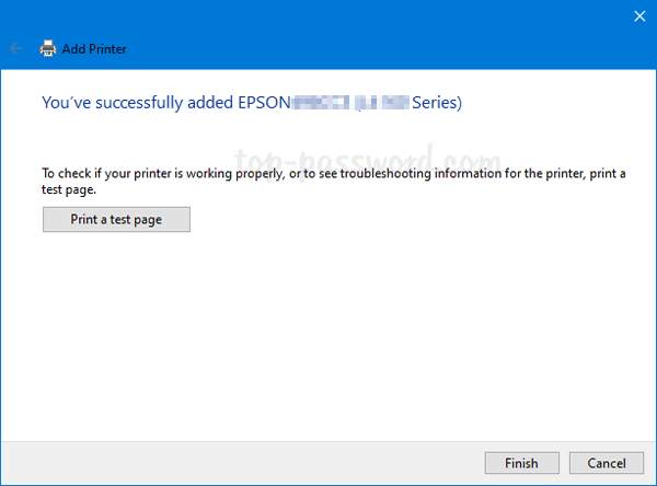 選擇“不共享此打印機”,然後您將進入安裝嚮導的最後一頁。您可以點擊“打印測試頁”以查看您的打印機和計算機是否可以相互通信。