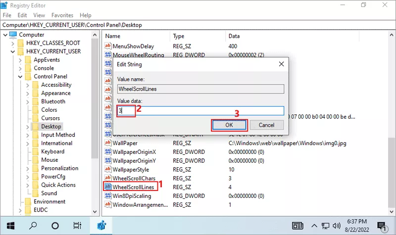方式3.通過註冊表編輯器調整鼠標滾動速度