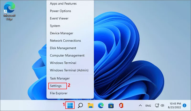 第 1 步:按贏鍵+我或右鍵單擊 Windows 圖標,然後單擊“設置”打開Windows 設置。