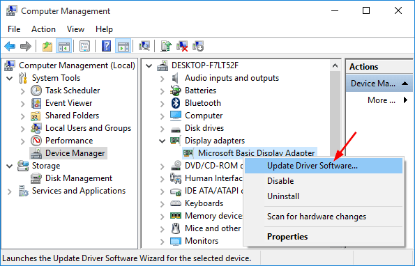 - 從設備樹中選擇一個設備,右鍵單擊它並選擇“更新驅動程序軟件” 從下拉菜單中。