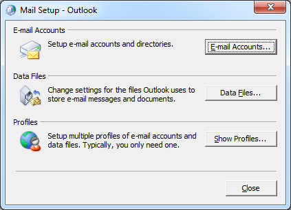 - 郵件設置窗口現在應該打開。單擊數據文件按鈕。