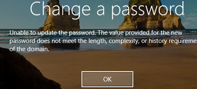 現在,如果用戶嘗試將密碼更改為與密碼黑名單中的模式之一匹配的任何密碼,則會出現一條錯誤,指出該密碼不符合密碼策略要求。